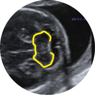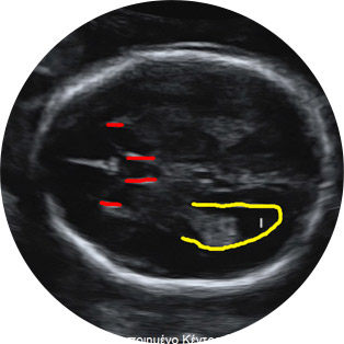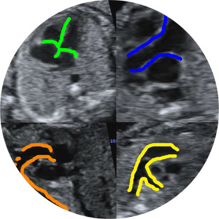 Το μέτωπο, οι οφθαλμικοί κόγχοι, τα χείλη και τα αυτιά ανευρίσκονται σταθερά μετά την 12 εβδ. Οβελιαίες, εγκάρσιες και στεφανιαίες τομές είναι αποκαλυπτικές για την εκτίμηση της ανατομίας. Η μέση οβελιαία τομή μάς δίνει το προφίλ του εμβρύου, ενώ οι παραβελιαίες που εφάπτονται στο κρανίο τα αυτιά. Ωστόσο, οι πιο σημαντικές είναι οι στεφανιαίες για την ανεύρεση όλης της ανατομίας.